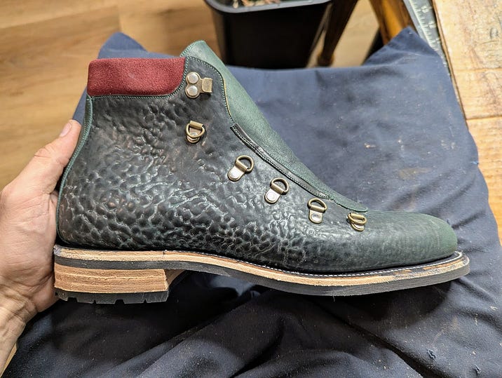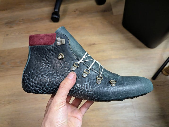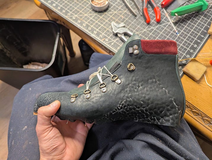 I’ve had a general shoemaking goal for a while now, to make one pair in every style. This is documenting my attempt at a hiking boot. This whole thing came about because I saw some cool looking hiking boot laces and decided to buy them, naturally I had to make a pair of boots to go with them.