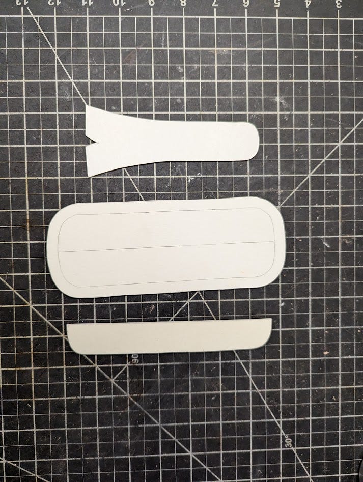 Here is an example of my pattern base. Very simple, a back strip to hide the back seam, and a padded collar. For the facing, I did about 1.5 cm in from the center line of the last, giving me a fairly wide space for the tongue. That line initially just follows the curve of the center line of the last, then gently merges into the vertical portion of the shaft. I don’t have a specific technique to do it, mostly just eyeball lines that look right. I determine the width of the tops by measuring ankle circumference then subtracting about what you want your facing opening to be (here its 3 cm), keep in mind tongue will add volume so you can extend the width of the tops out a little more.