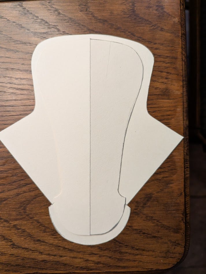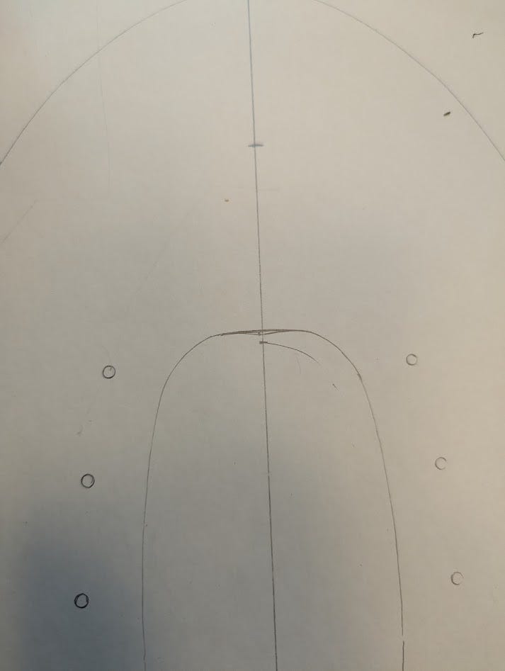Next, line up point A and point B (where the facing meets the center line on the last, marked in Blue) with the center line, and draw out the line pictured in red. Make sure to mark point B as well on your center line.