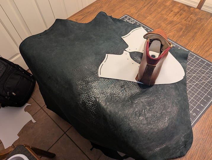 Getting ready to cut. I ended up making a mock up boot to test the pattern first.