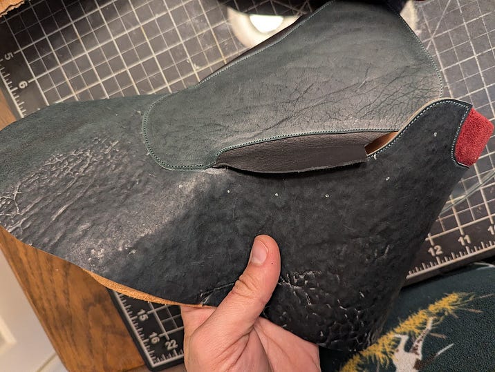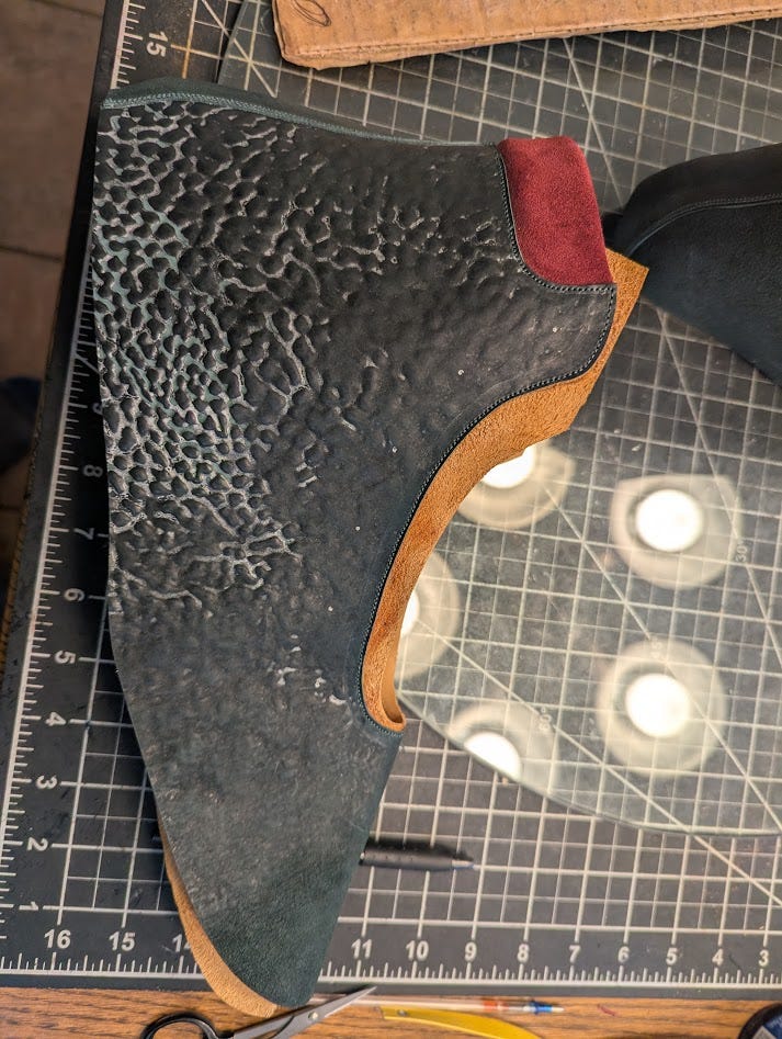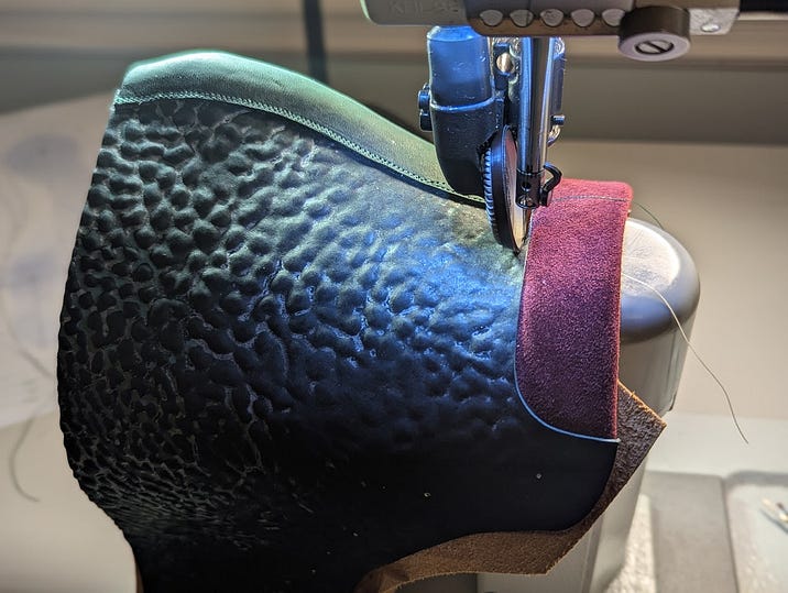 The tongue was a bit tricky and a lot of trial and error. I haven’t handled any hiker boots personally, but there seem to be a lot of different styles of tongue, all of which are stitched along the top line.
