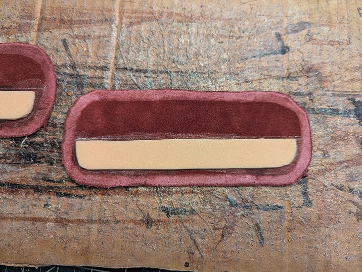 Once you have the base of the tongue attached, glue in the lining making sure the upper of the tongue overlaps it a bit at the transition point. Finish the stitch to the top. Do one side at a time.